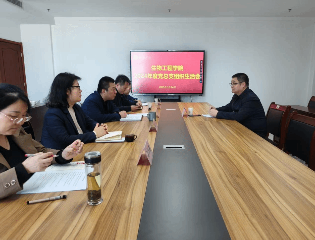 3月24日下午,我院党总支在培训中心1912会议室召开年度组织生活会。党委委员、组织人事部部长李超到会指导,党总支书记李玉群主持会议,全体党总支成员参加。会上李超传达了学校党委民主生活会情况,并提出“沟通情况、加深了解、形成共识、取得成效”的要求。李玉群汇报了会议准备情况,并代表党总支作对照检查;各委员结合自身实际,分别作对照检查,提出整改措施,并虚心接受批评意见。李超在总结讲话中充分肯定会议成效,指出此次组织生活会准备充分、...