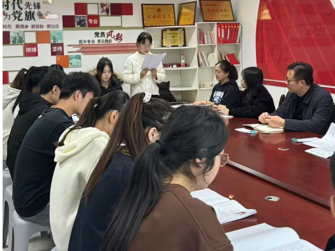 为进一步加强高校基层党组织建设,做好新时代党员发展和教育工作,确保党员发展质量,我院学生党支部于2024年11月15日在培训中心204召开支部纳新大会,讨论决定接收刘洋等23名发展对象为中共预备党员事宜。党总支副书记刘治刚及学生党支部书记孟蔷出席会议,学生支部全体党员参会,会议由学生党支部书记孟蔷主持。会上,全体肃立,面向党旗奏唱国际歌、中华人民共和国国歌,在庄严肃穆的歌声中,纳新大会拉开帷幕。刘洋等二十三名发展对象分别向大会汇报考察期间思想动态、...