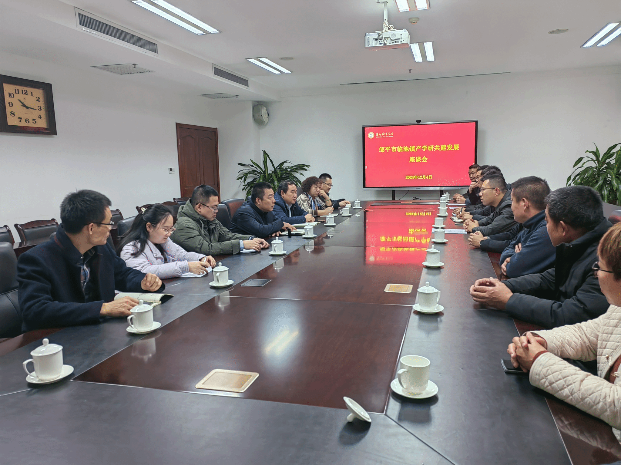 为深化校地合作,探索产学研综合发展路径,12月4日上午,邹平市临池镇镇党委副书记、镇长张吉昊一行11人来院洽谈交流,我院党总支书记李玉群,我院博士团队成员参加座谈。李玉群对邹平市临池镇领导、干部的到来表示热烈欢迎,介绍了学校和我院情况,以及博士团队个人擅长领域;张吉昊介绍了邹平市临池镇发展现状、遇到问题以及今后发展的思路。随后各位博士针对自己擅长的领域与镇领导干部、村党组织书记进行交流,主要针对中草药、...