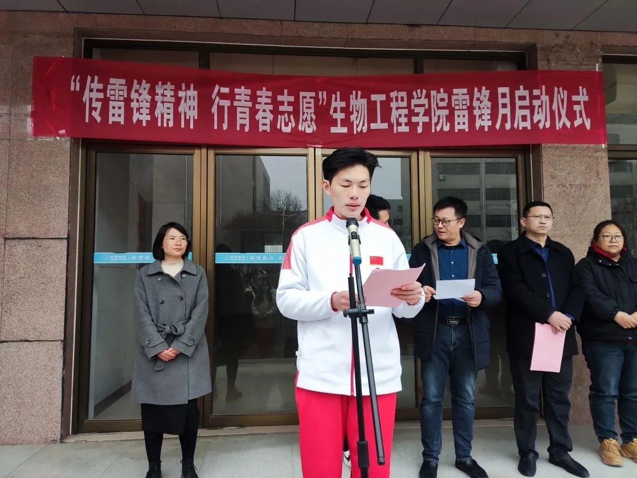 3月5日中午,我院雷锋月启动仪式在庄严的国歌声中拉开序幕。由我院党委副书记主持启动仪式。雷锋精神代表同学上台发表倡议,向全体师生发出“学习雷锋好榜样,争做雷锋好青年”的倡议。我院李明院长在此发言,希望全体师生将雷锋精神内化于心,外化于行,以饱满的精神状态投入到雷锋志愿服务活动中去,让雷锋精神在新时代绽放光芒。
