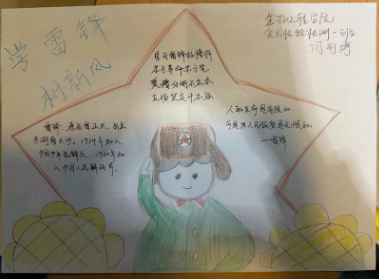 本次活动中同学们在线上以画手抄报的形式参加了本次活动,在画手抄报的过程中通过摘抄雷锋日记、撰写雷锋的名言名句、歌颂雷锋等内容生动形象地描绘出雷锋的钉子精神。使同学们更加了解雷锋精神的精神内涵,传承了雷锋精神,强化了新时代青年的奉献精神。