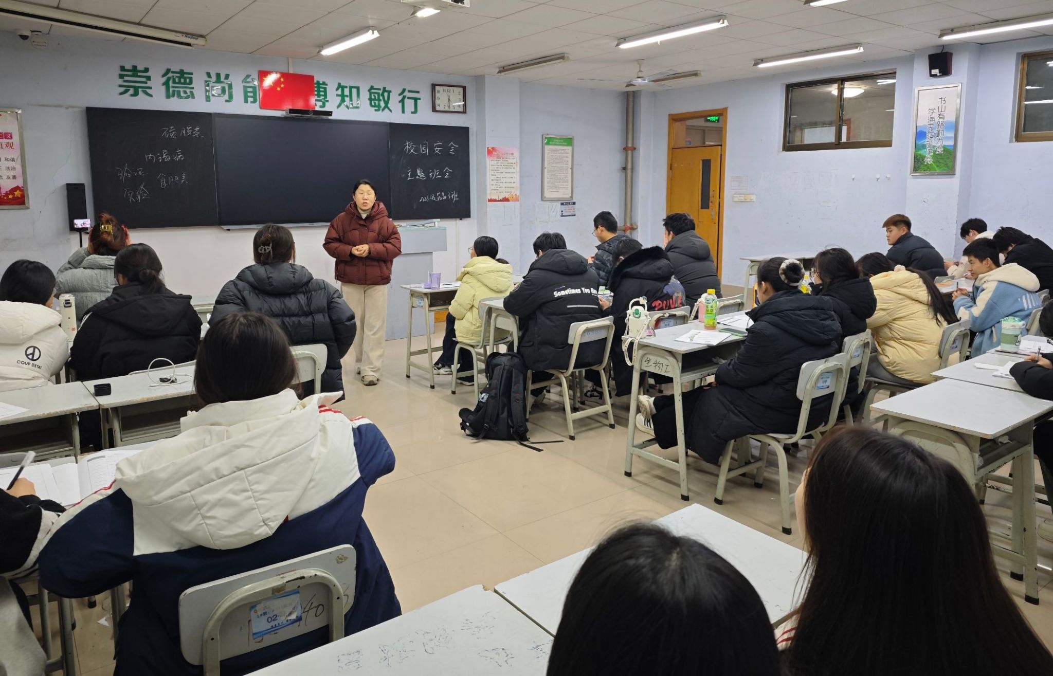 为进一步做好学生安全教育工作,提高安全防范意识和应急处置能力,杜绝校园安全事故发生,近日,我院全体班主任、辅导员在二号教学楼开展“利人利己,敬畏生命,共创平安家园”消防安全主题班会。