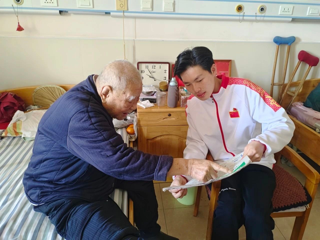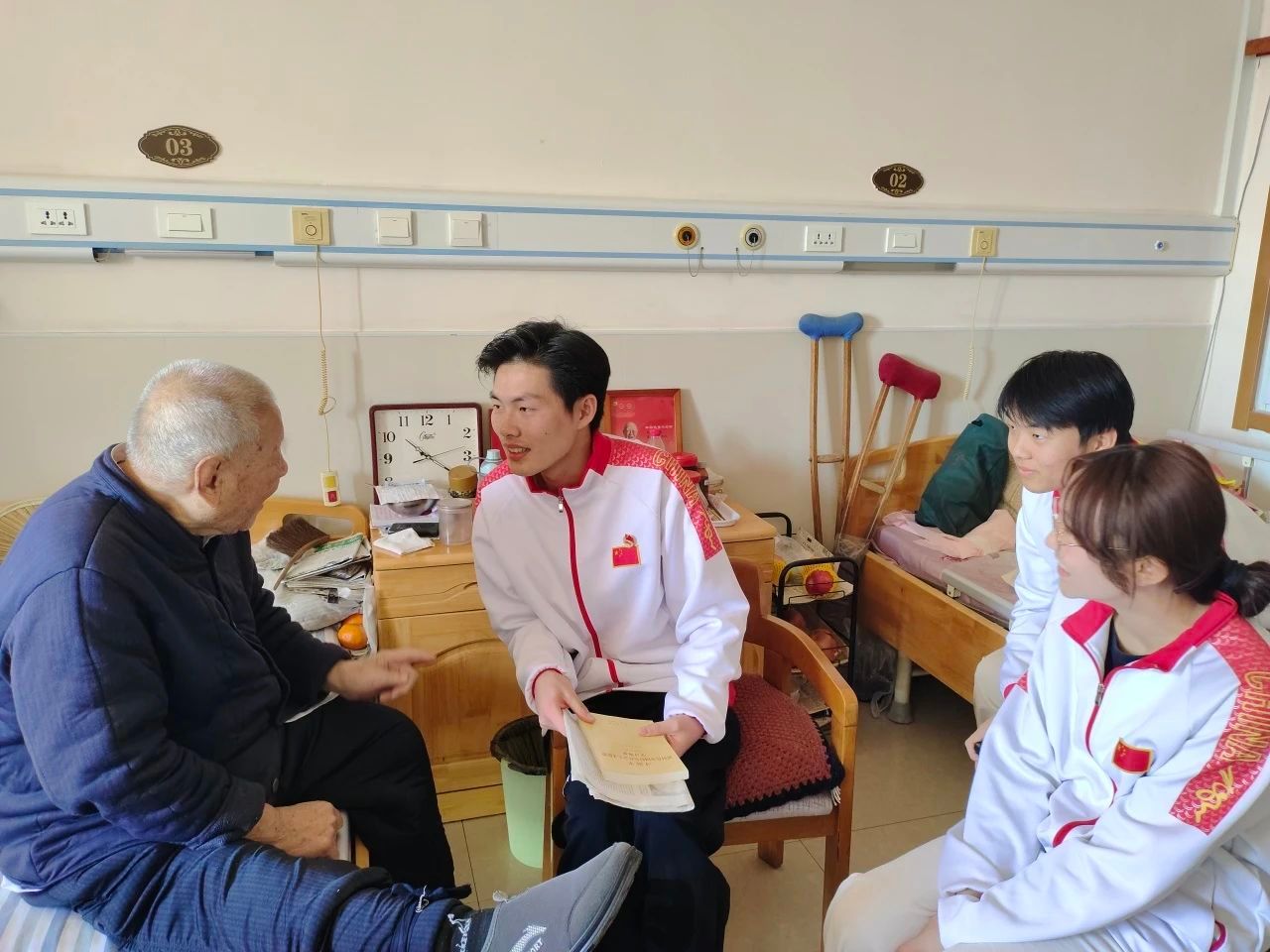 活动开始前,两院的志愿者们集思广益、精心策划活动主题和内容,制定了活动方案并进行认真筹备。活动过程中,志愿者们按照方案分成两组,分别前往不同楼层,有序开展志愿服务活动。志愿者们对老人进行了慰问,与老人促膝长谈,听老人讲述抗战事迹和红色革命故事,倾听老人对往事的追忆。与老人们交谈完之后,正值中午,志愿者们帮助工作人员给老人们准备午饭,志愿者们的到来,给养老院带来了欢声笑语和勃勃生机。