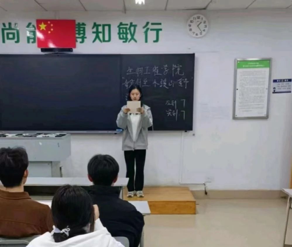 活动开始前,各班同学准备好要演讲的关于春分的诗句及其蕴含的意义和感悟。活动期间,由社会实践委员组织同学们集中坐好并按顺序依次上台分享。通过了解春分的古诗词,让同学们充分感受中国二十四节气的内涵,激发同学们对中华优秀传统文化的兴趣,弘扬中华优秀传统文化。