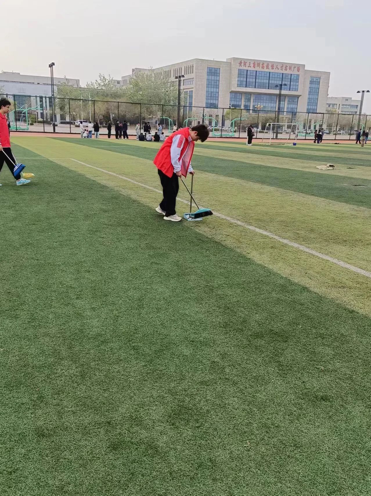 本次活动在我们的魁山体育场上举行,在活动开始之前,同学们积极参与,拿着卫生工具提前到达场地,做好一切准备工作。在活动开始后,同学们认认真真检查体育场上的卫生情况,做到心中有数,并且通过团结协作对体育场上的纸屑和烟头进行处理。通过同学们的劳动换来了一个干净整洁的体育场。